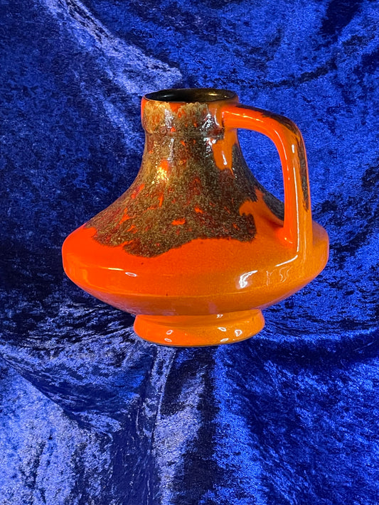 JOPEKO UFO Design Handled Vase Orange Lava 1970s West Germany Ceramic Space Age Fat Lava Collectible