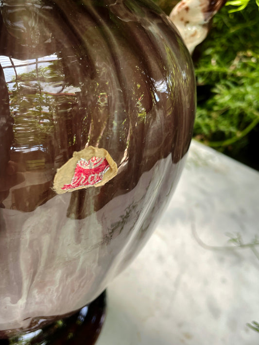 West German Fat Lava Vase; Brown Volcanic Glaze, 1960s