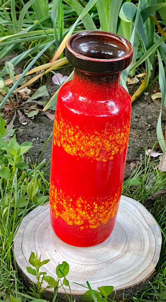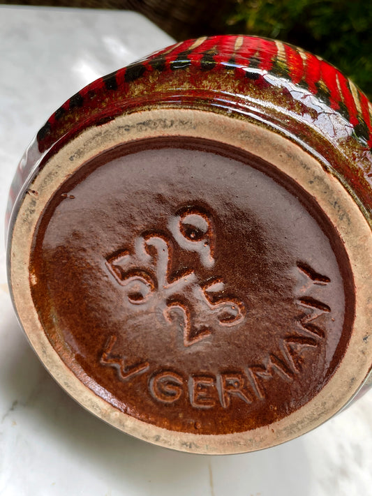 Vintage West German “Fat Lava” Vase with Striped Glaze and Red Drip Base