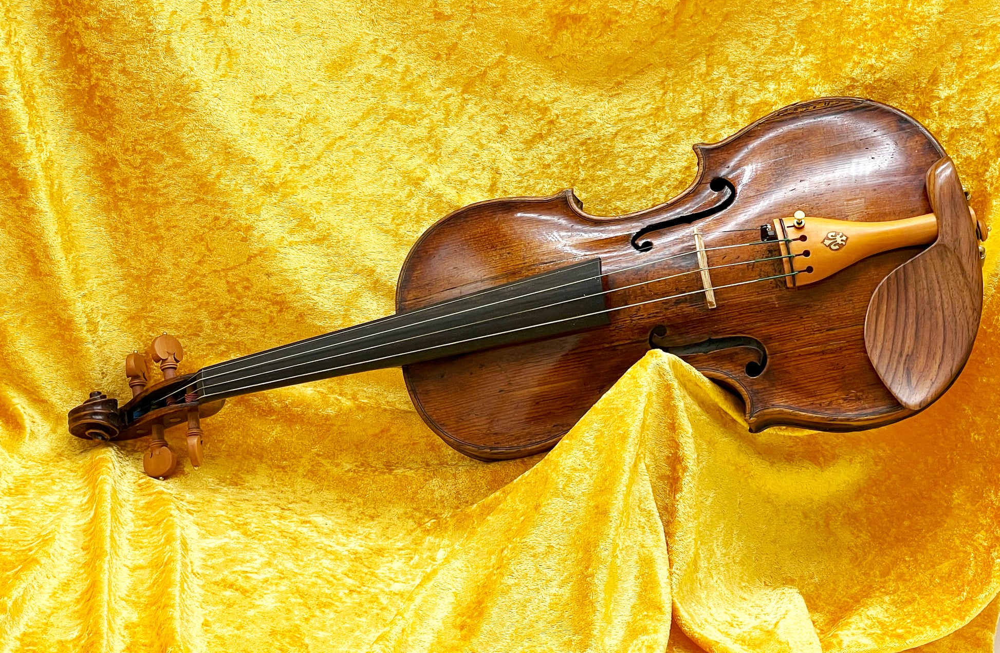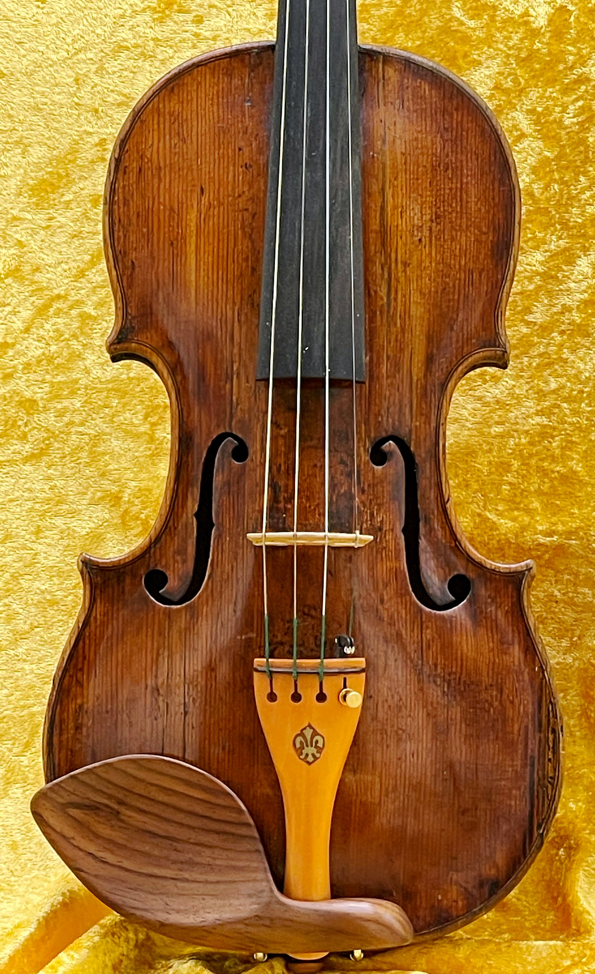 The instrument has been expertly restored and fitted with a high-quality setup, including new professional pegs, a fine tailpiece, and an ergonomic chinrest. It is fully play-ready and responds with ease, making it ideal for both advanced students and experienced musicians seeking an antique violin with personality and tonal refinement.