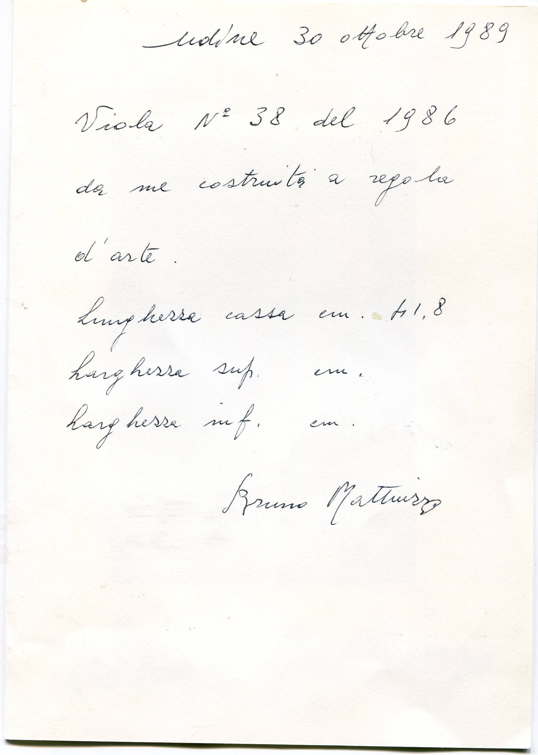 Fine Italian Viola by Bruno Mattiuzzo – with Certificate