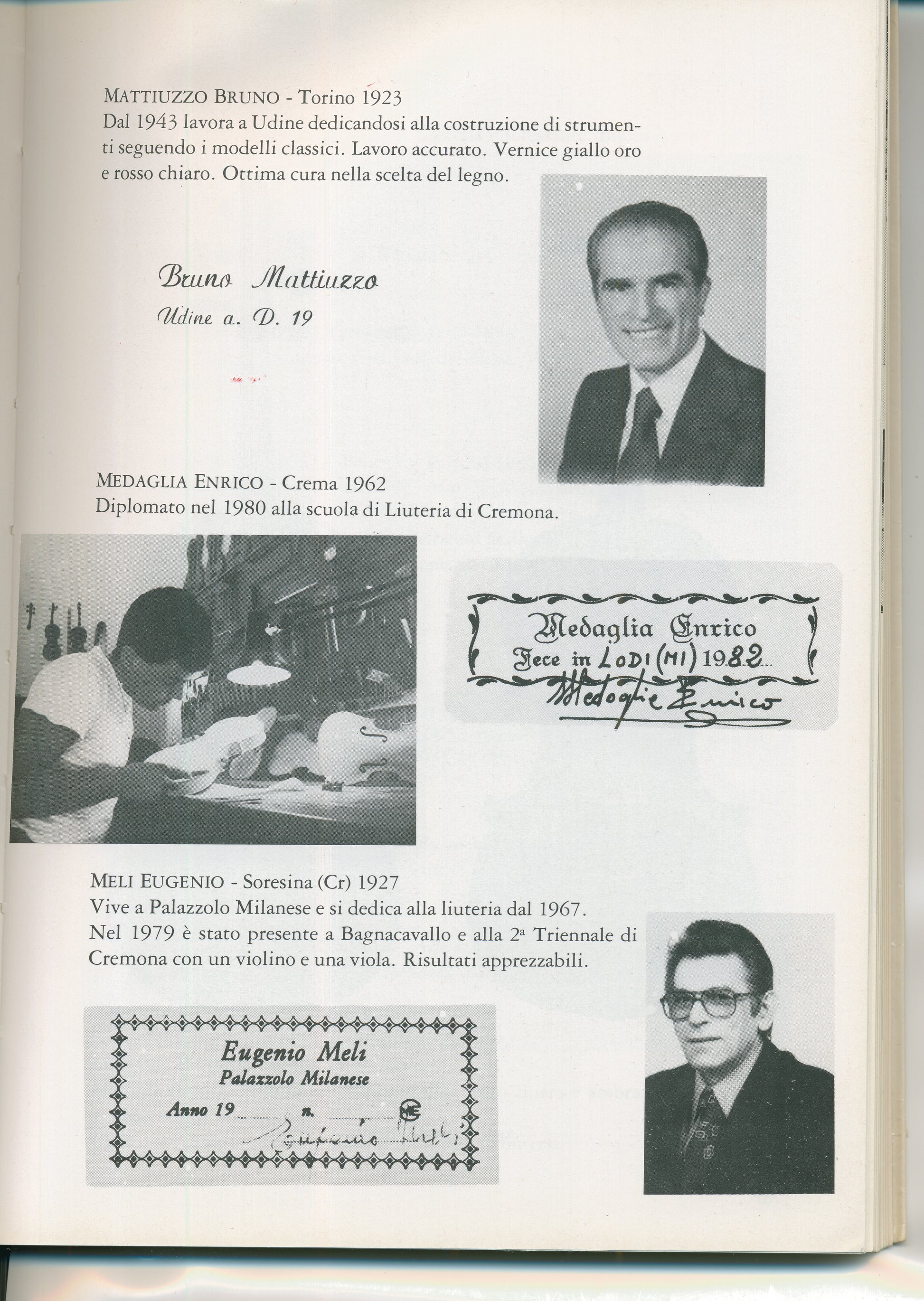 Bruno Mattiuzzo began his career in Udine in the 1940s, following the classical Cremonese traditions of violin making. His instruments are recognized for their meticulous craftsmanship, fine selection of tonewoods, and distinctive golden-amber varnish. He is listed among 20th-century Italian luthiers in authoritative references on modern Italian violin making.