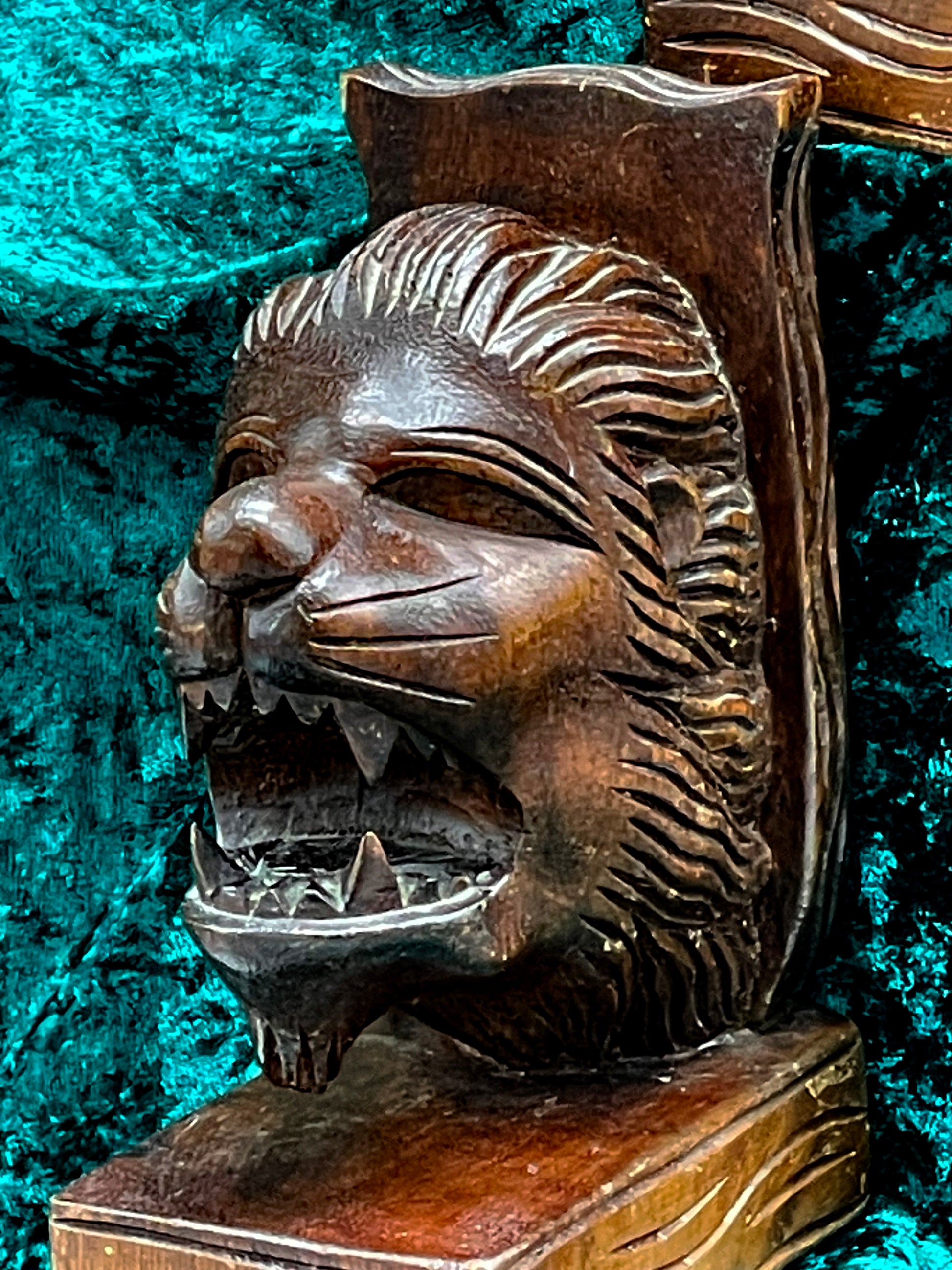 Pair of Solid Exotic Wood Bookends – Hand-Carved Wild Lion Heads – Vintage Decorative Bookends 18 cm